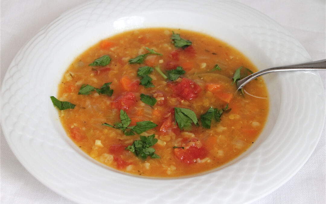 Serves 12, as a soup course. We’ve made this anti-cancer soup lots of times for friends with cancer.   Ingredients: 1 cup red lentils, rinsed and picked over for small stones 2-3 cloves garlic, minced 1 onion, chopped 1 carrot, peeled and chopped...